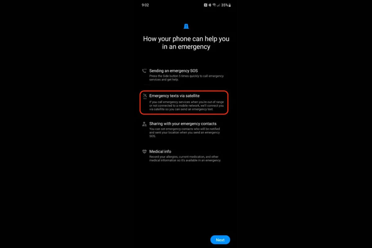 Theo đó, SamMobile đã đăng tải một bức ảnh cho thấy, tính năng vệ tinh trên Galaxy S24 Series sẽ cho phép người dùng nhắn tin khẩn cấp qua vệ tinh.