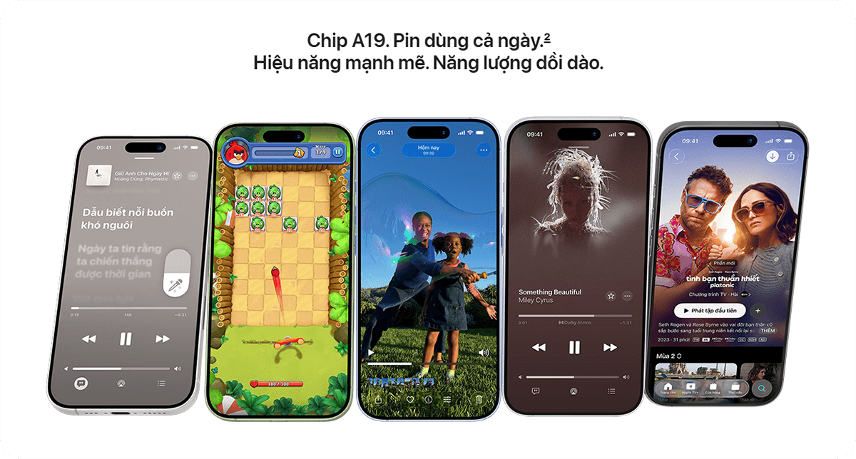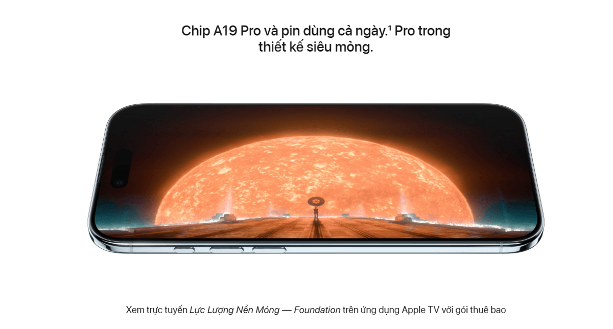 - ♦ Chip A19 Bionic / A19 Pro mang lại hiệu năng vượt trội, hỗ trợ Apple Intelligence (AI).