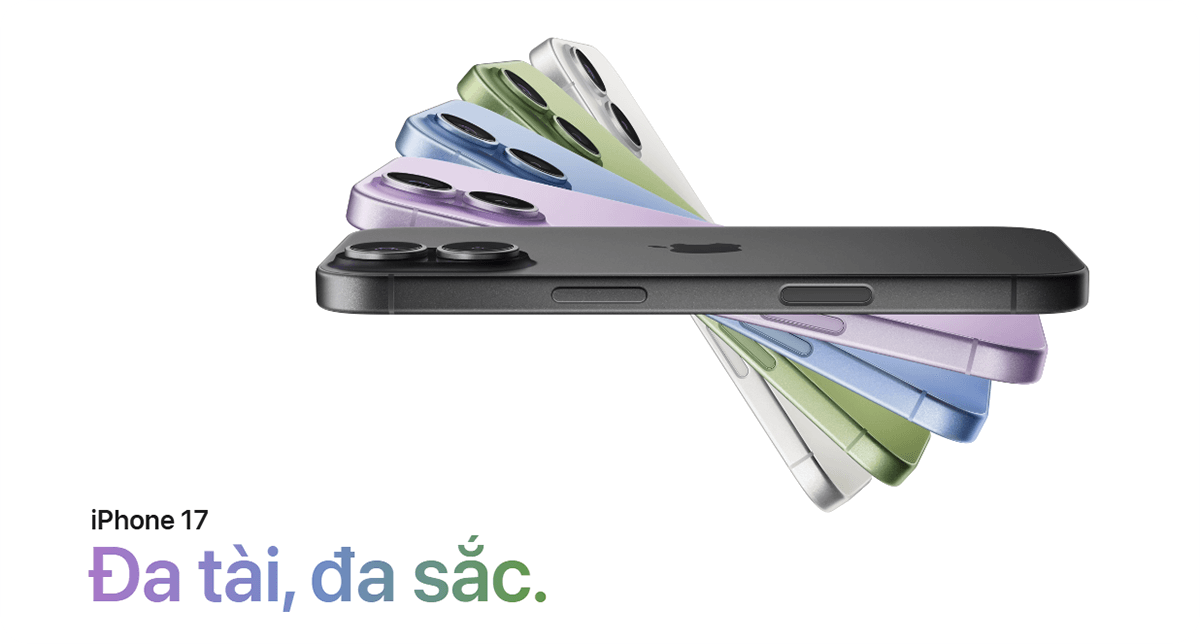 ♦ iPhone 17: Tím Oải Hương, Xanh Lá Xô Thơm, Xanh Lam Khói, Trắng, Đen.