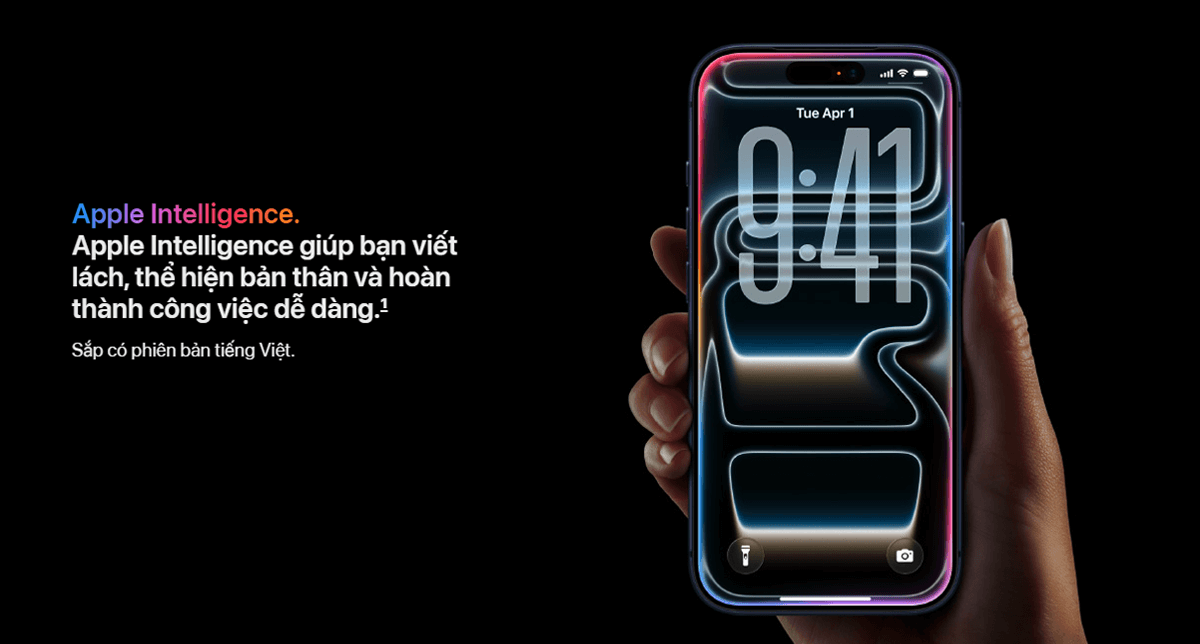 ♦ Apple Intelligence (AI thế hệ mới) chạy trực tiếp trên thiết bị, đảm bảo quyền riêng tư và trải nghiệm mượt mà.