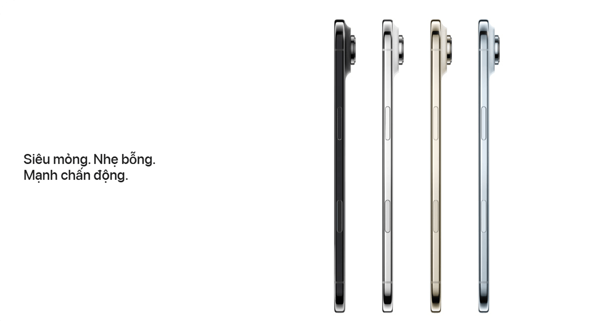 - ♦ iPhone Air: thiết kế siêu mỏng nhẹ, pin nhỏ hơn nhưng hiệu năng ngang dòng Pro.