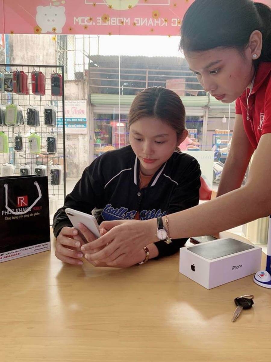 - Khách hàng đem máy cũ đến cửa hàng Phúc Khang Mobile để định giá.