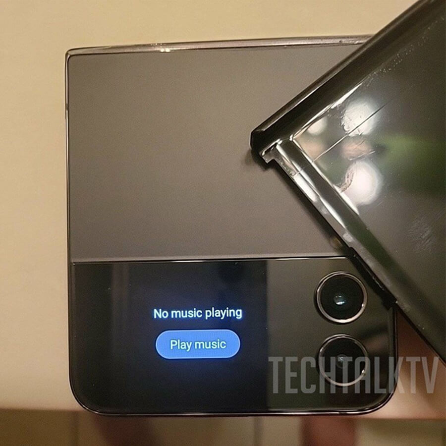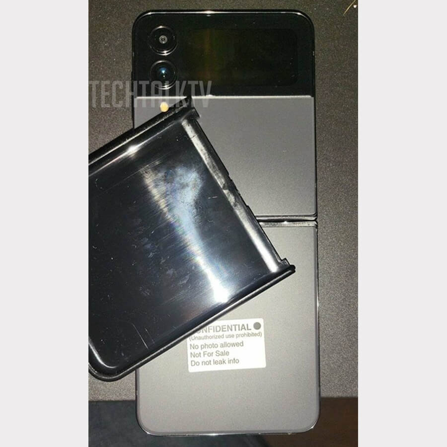 Để đáp ứng phần nào sự mong chờ từ các fans, trang TechTalkTV mới đây đã cho đăng tải những hình ảnh thực tế đầu tiên về chiếc Z Flip4 bản thử nghiệm, với tem bảo mật dán trên mặt lưng máy.